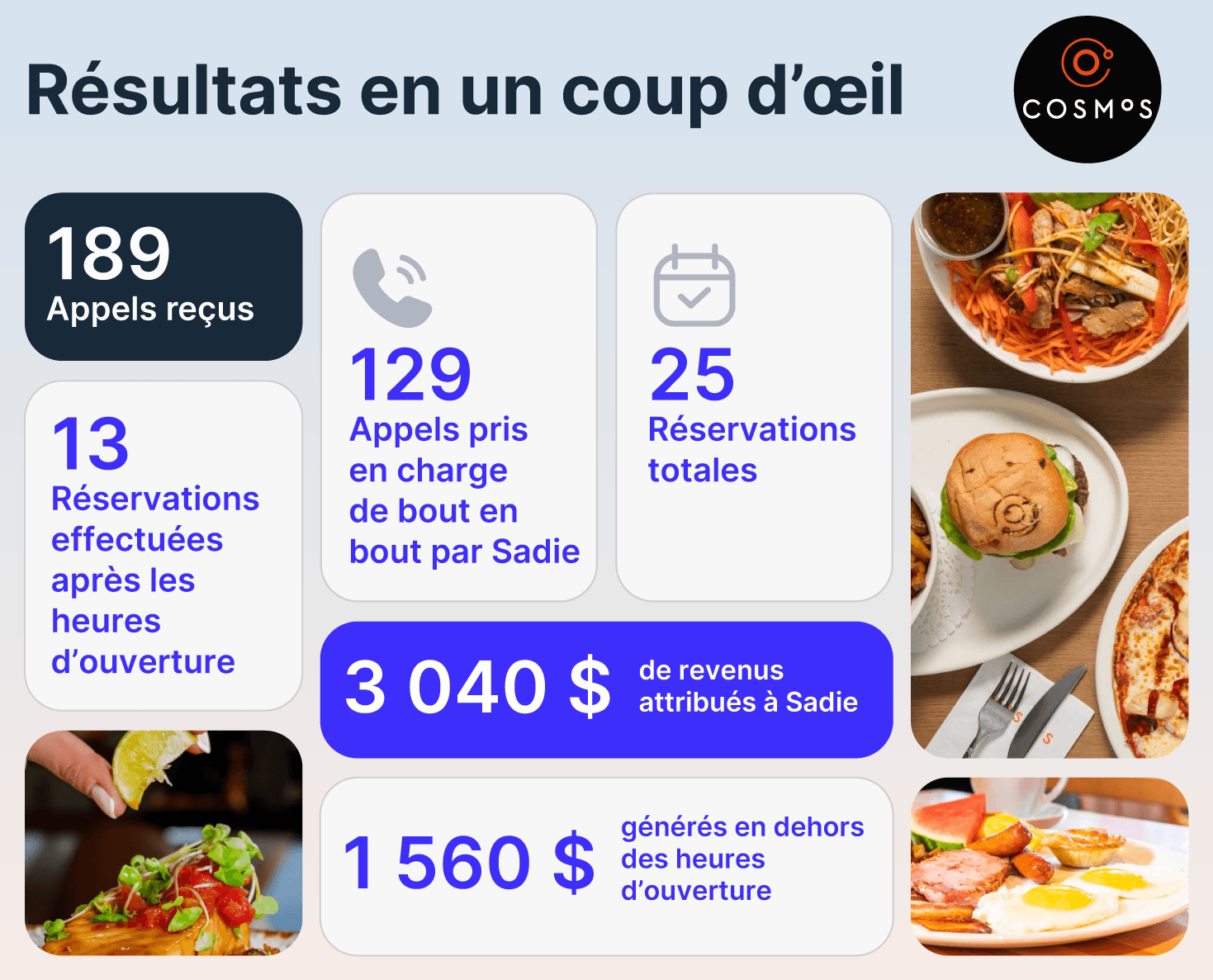 Cosmos, une marque de restaurants bien connue à Quebec depuis plus de 30 ans, a réalisé quelque chose de bien simple mais très significatif: même lorsque les appels sont répondus la plupart du temps, un pourcentage significatif de réservations est perdu lorsque l’équipe ne peut pas répondre immédiatement.